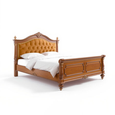 Кровать из массива или в комбинированной отделке под спокойный интерьер.