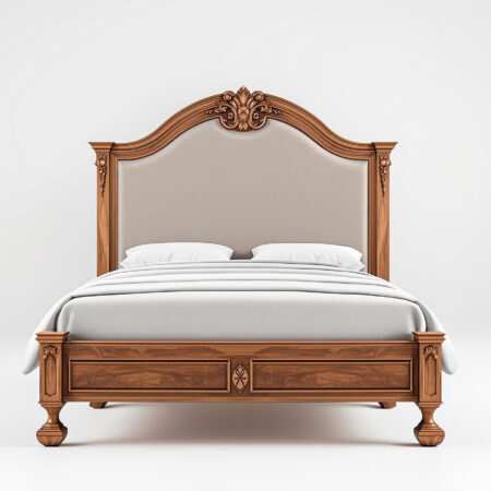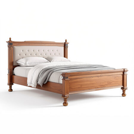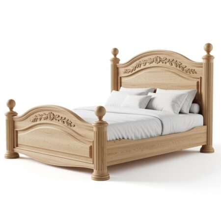 Кровать из массива или в комбинированной отделке под спокойный интерьер.